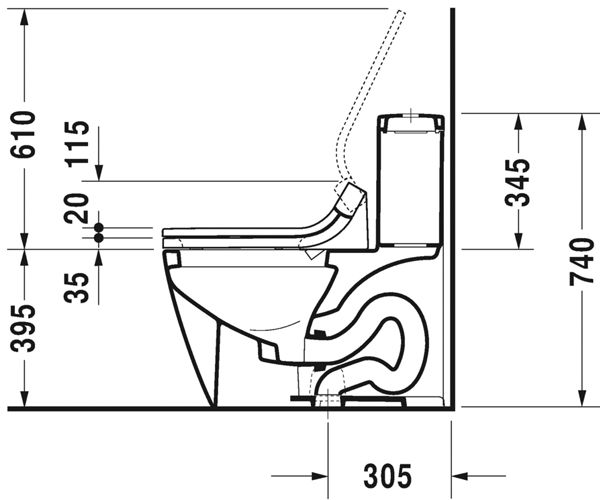 型号 213301 美式座便器, 适用于 SensoWash® Starck, 加长型带虹吸喷头, 305 mm/12" 坑距, 单冲水装置,顶部冲水, 垂直出水, 1.28加仑/冲 (4.8升) 了解更多 Philippe Starck 设计 尺寸:375 x 715 mm 可变形式 ©2133010005