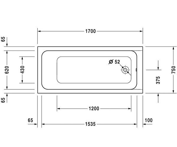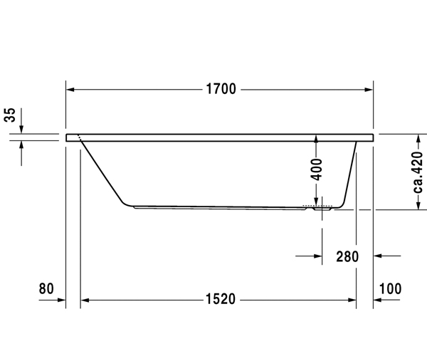 1500 x 750 mm矩型, 带一个倾斜靠背, 出水口位于脚部, ´卫浴亚克力