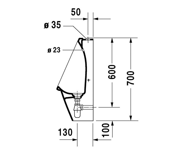型号 082625 顶部进水, 无缝冲水 Philippe Starck 设计 尺寸 245 x 300 mm 可变形式 无防溅图标, 包括喷嘴、进水组件、陶瓷表面排水口 Ø 72 mm、瓶式存水弯 Ø 32 mm 和配件 0826250000