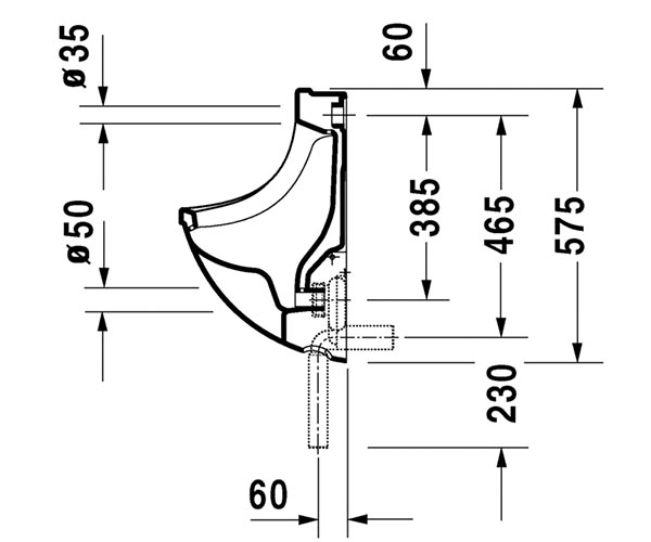 型号 082135 隐蔽式进水, 虹吸式, 垂直出水或水平出水, 包括配件 Philippe Starck 设计 尺寸 330 x 350 mm 可变形式 无防溅图标 0821350000 带防溅图标 0821350007
