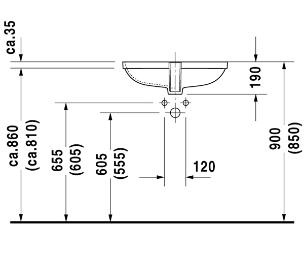 型号 033856 台下式脸盆, 有溢水口, 无龙头安装台, 包含安装木质台面配件, 560 mm 附加信息 台下式脸盆尺寸指的是脸盆内部尺寸 sieger design 设计 尺寸 560 mm 可变形式 没有龙头孔 0338560000