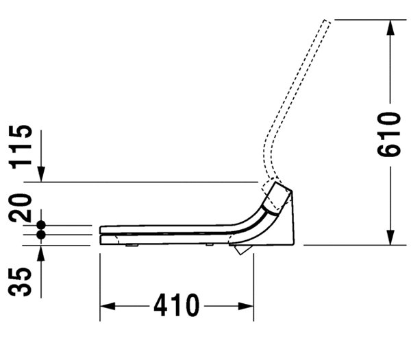 型号 610001 臀部冲洗、女士冲洗和舒适冲洗, 可个性化调节水温、暖风温度、座圈温度、喷头位置和喷水强度, 操控式盖板与座圈, 夜灯, 2 个可调节的个性化用户设置, 包括遥控器, 可自洁喷管, 开 / 关, 带隐藏式连接件, 一键式轻松安装与拆卸 了解更多 Philippe Starck 设计 尺寸:370 x 515 mm 可变形式 AC 220V 50Hz 610001002002300