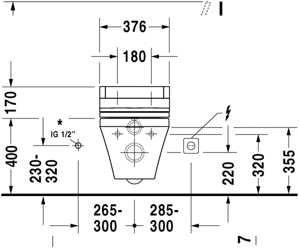型号 253709 水封在后, 包括 Durafix 配件包 附加信息 配送中包括 Durafix 隐藏式连接件, 适用于SensoWash®电子座便器座圈,请见xxx页。 Matteo Thun & Antonio Rodriguez 设计 尺寸 370 x 620 mm 可变形式 ©4.5 升 2537090000